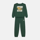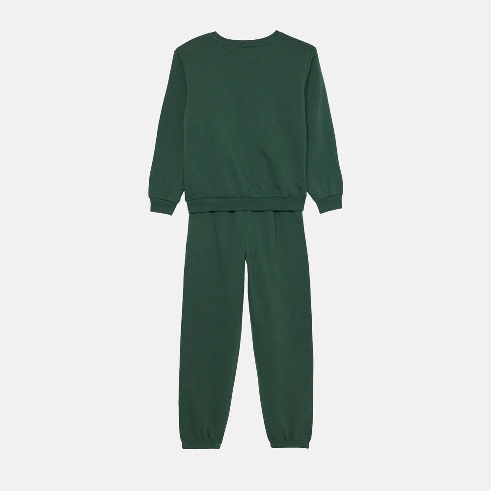 Tuta Converse in cotone fleece per bambini che combina stile urbano e praticità quotidiana. La felpa girocollo presenta la celebre stampa grafica All Star con le iconiche Chuck Taylor, mentre i pantaloni jogger offrono elastici in vita e alle caviglie per una vestibilità sicura durante il gioco. Dettagli ricercati come il logo ricamato sulla gamba e i polsini elasticizzati completano un capo versatile, ideale per il tempo libero e perfetto per chi ama lo stile Converse autentico e riconoscibile.