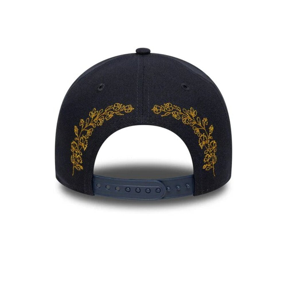 Cappello 9FORTY E-Frame New York Yankees in poliestere 100%, caratterizzato da una corona strutturata e visiera curva. Presenta il logo Yankees ricamato sul frontino, dettagli floreali eleganti sulla visiera e sul retro, oltre al ricamo New Era Flag sul lato sinistro. La chiusura snapback regolabile garantisce una vestibilità comoda e versatile. Design tonal in blu navy che combina stile classico e contemporaneo, perfetto per gli appassionati di baseball e di moda sportiva.