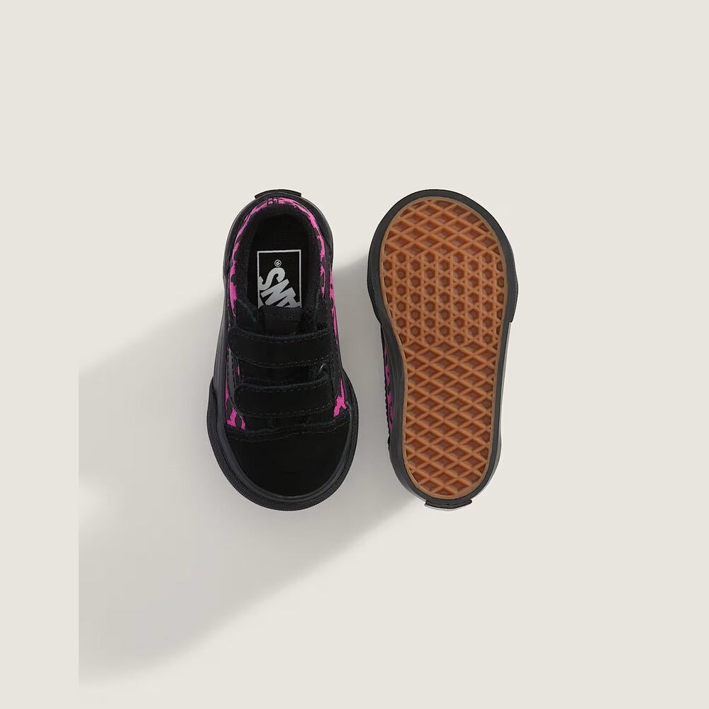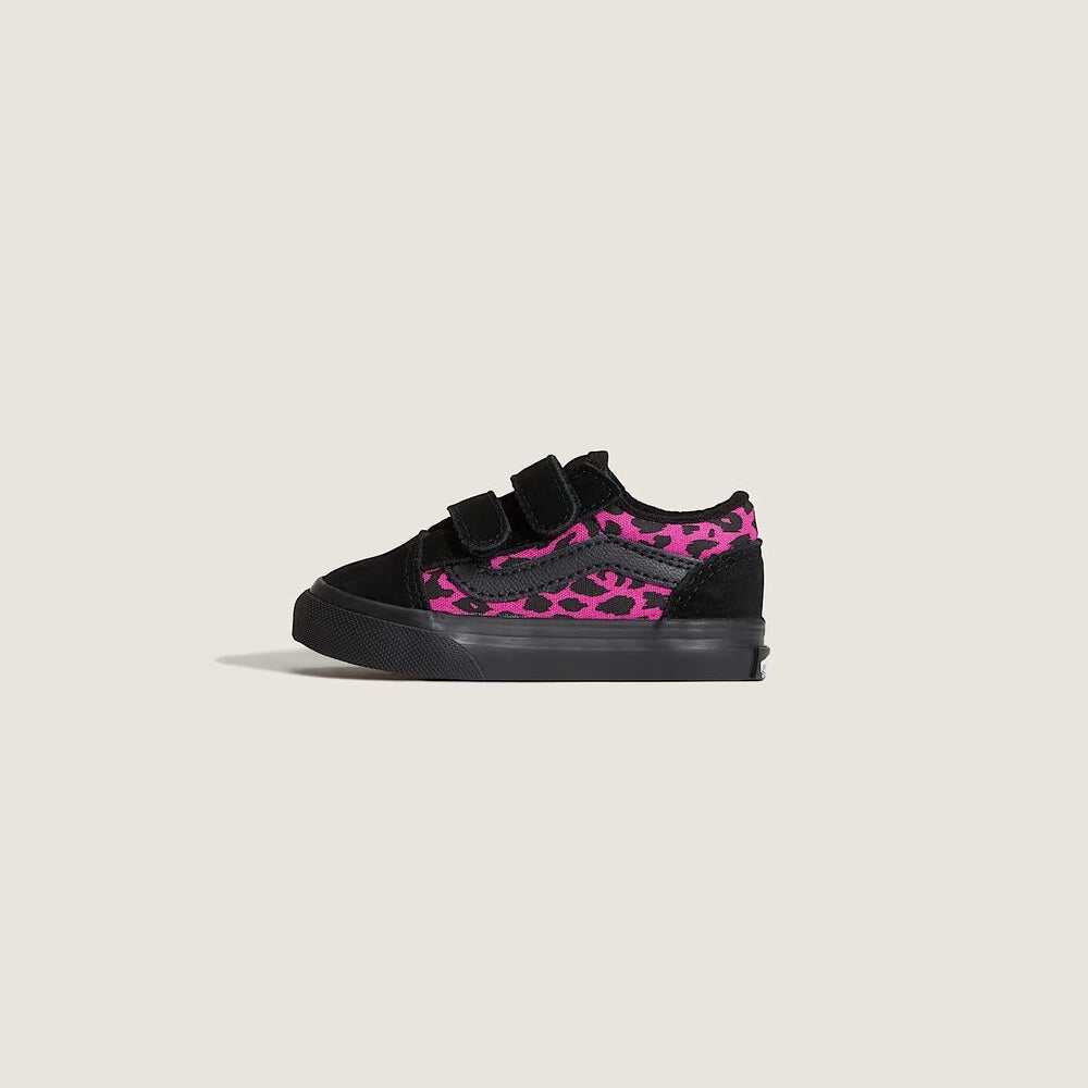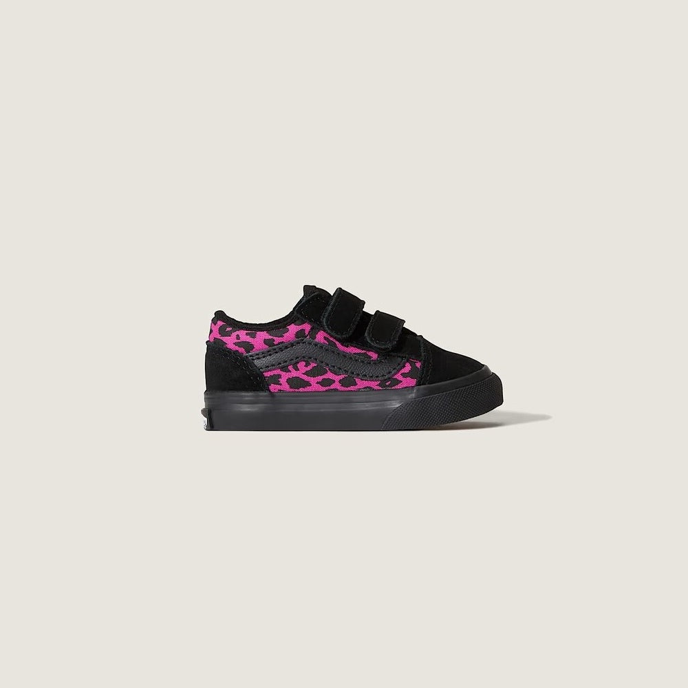Le Vans Old Skool V Leopard per bambina rinnovano il classico modello con una tomaia sintetica resistente e una doppia chiusura a strappo, sostituendo i tradizionali lacci. Il design low-top offre una calzata sicura e confortevole, ideale per accompagnare le avventure quotidiane dei più piccoli con stile e praticità. Facili da indossare e rimuovere, sono la scelta perfetta per chi cerca funzionalità senza rinunciare al fascino iconico Vans.